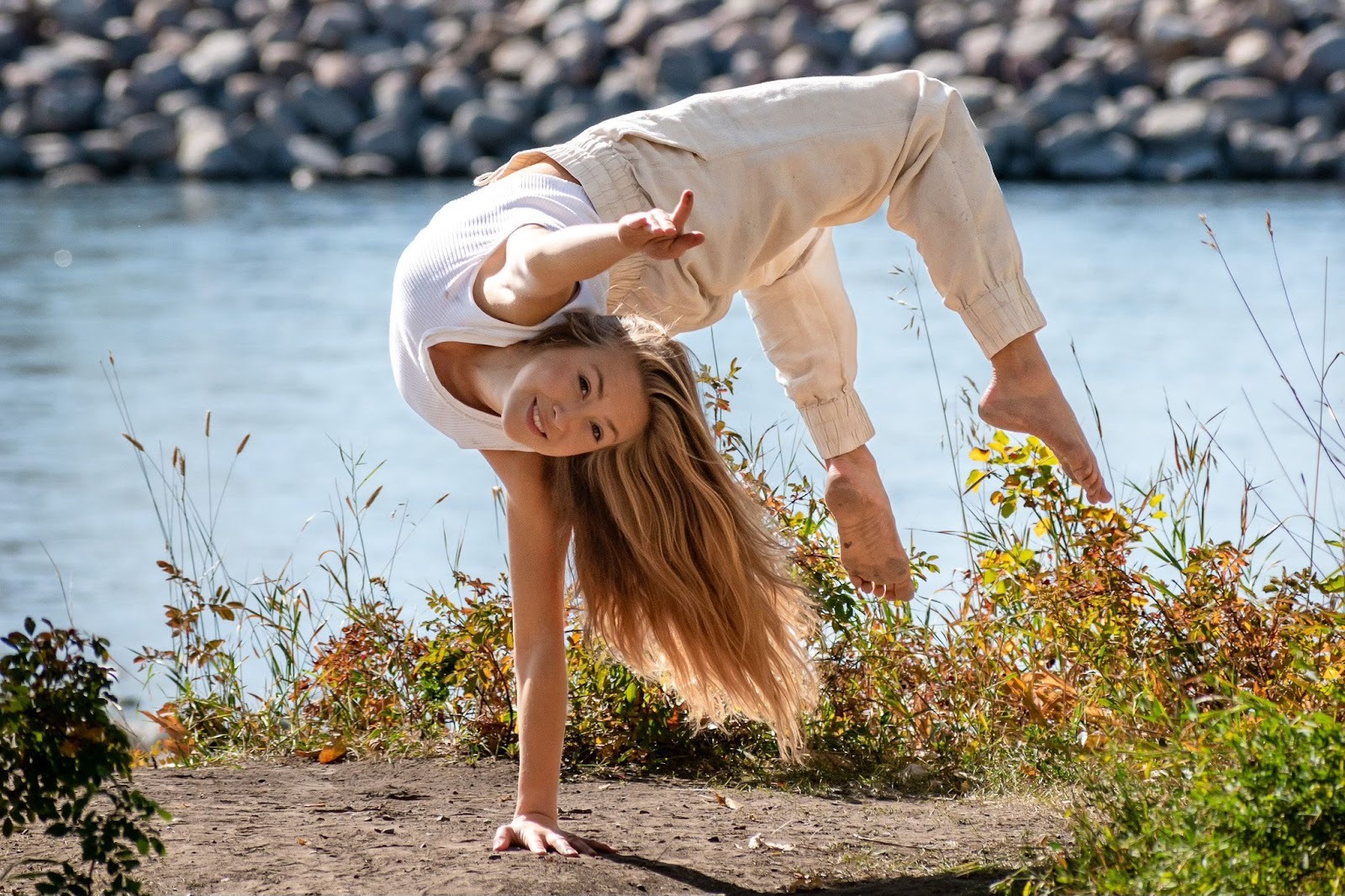 Kathryn draws from a diverse background—including Capoeira, strength training, partner work, and certifications in Mat Pilates and Acrobatic Arts—integrating these influences into a movement language that invites presence and risk, blurring the lines between art and life.